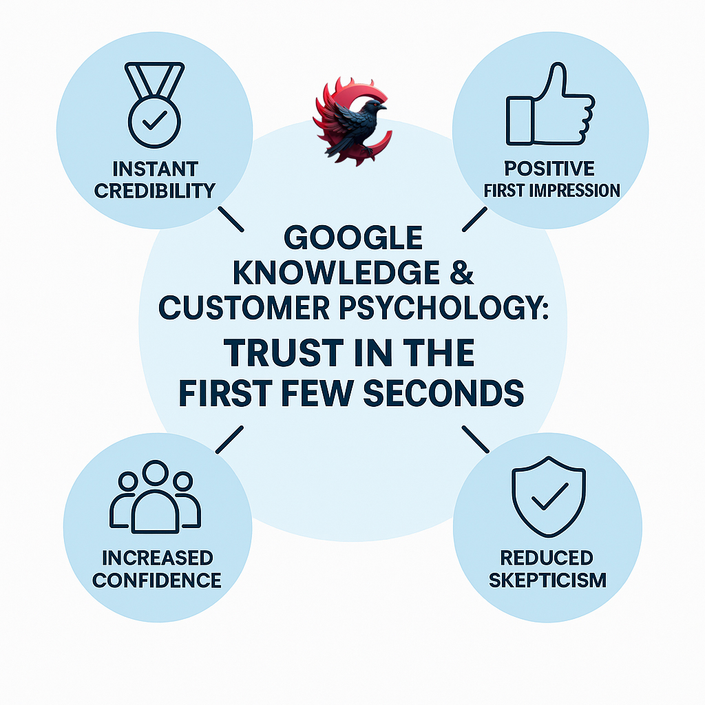 روانشناسی مشتری نشان داده است که اعتماد، ترکیبی از منطق و احساس است. گوگل نالج دقیقاً روی همین دو بُعد اثر می‌گذارد: از یک سو اطلاعات رسمی و دقیق برند منطق کاربر را قانع می‌کند، و از سوی دیگر طراحی بصری منظم و حضور در رسانه‌های معتبر، احساس امنیت و اعتماد را در او تقویت می‌نماید.