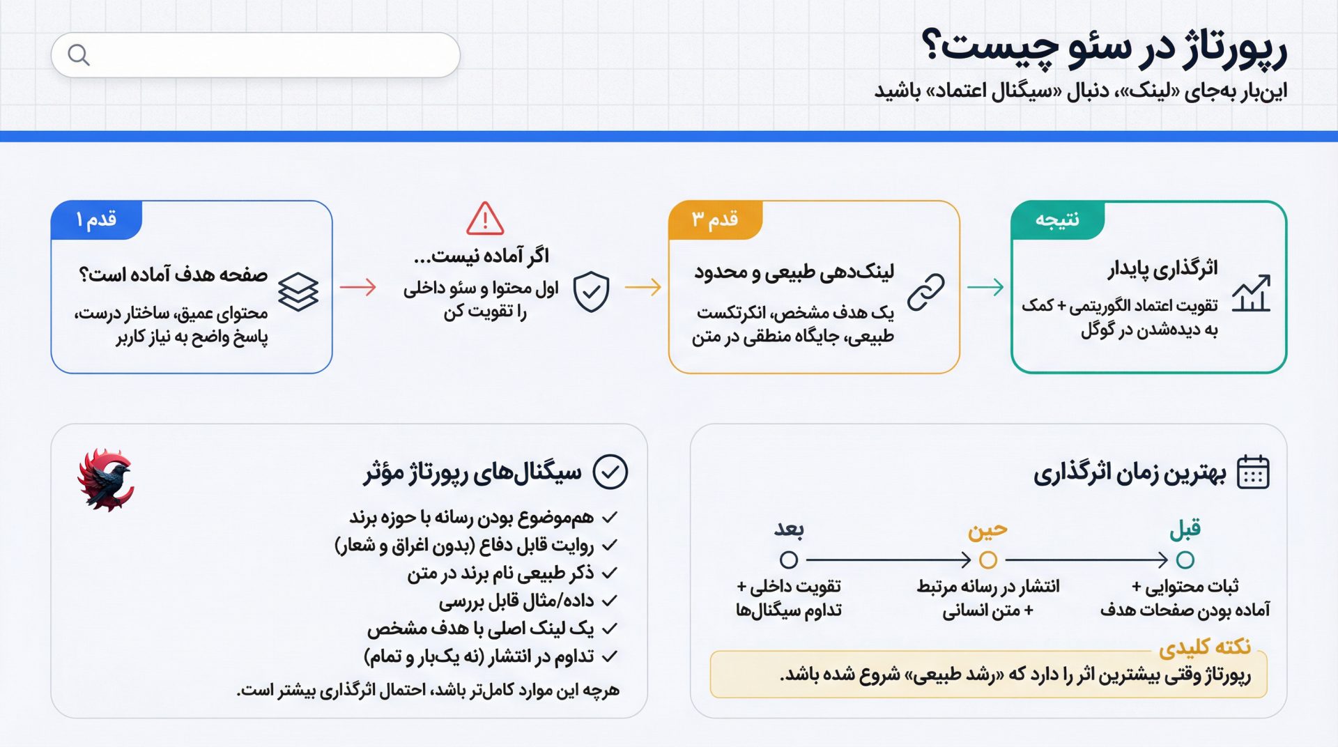 رپورتاژ در سئو، جایگزین محتوای ضعیف، سایت آمادهنشده یا استراتژی اشتباه نیست.