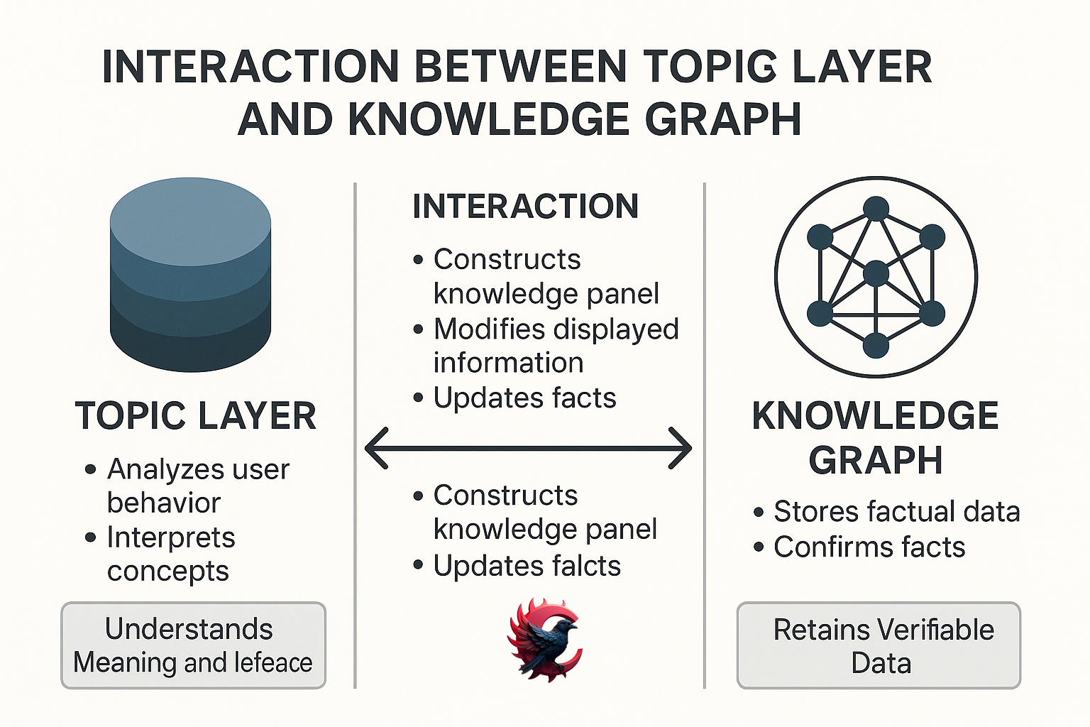 Topic Layer بر خلاف Knowledge Graph از حقایق ثابت استفاده نمیکند، بلکه یک مدل شناختی است که به صورت «پویا» از حجم عظیم محتوا تغذیه میشود.