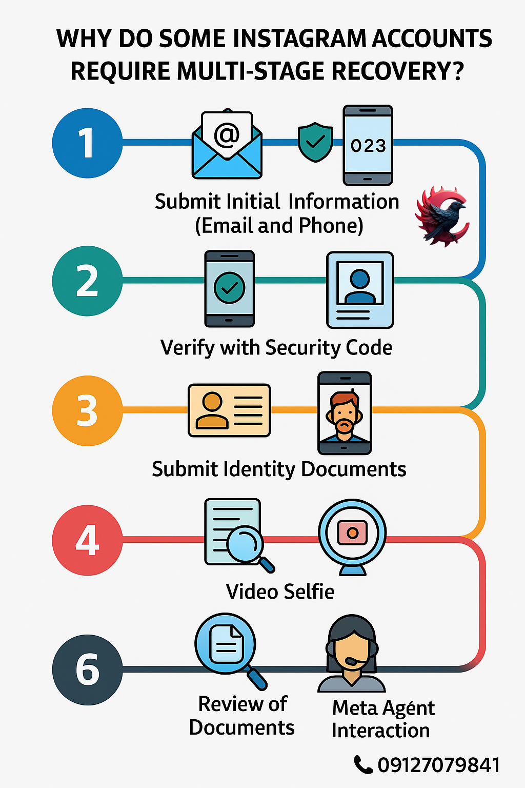 - در مقابل، بازگردانی چندمرحلهای زمانی اعمال میشود که حساب ارزش بالایی دارد (مثلاً پیجهای تجاری یا اینفلوئنسرها) یا نشانههایی از نفوذ جدی، تغییر اطلاعات اصلی و حتی تخلفات امنیتی وجود دارد. در چنین مواردی، اینستاگرام به یک تأیید چندلایه نیاز دارد تا مطمئن شود فقط مالک واقعی دوباره دسترسی پیدا میکند.