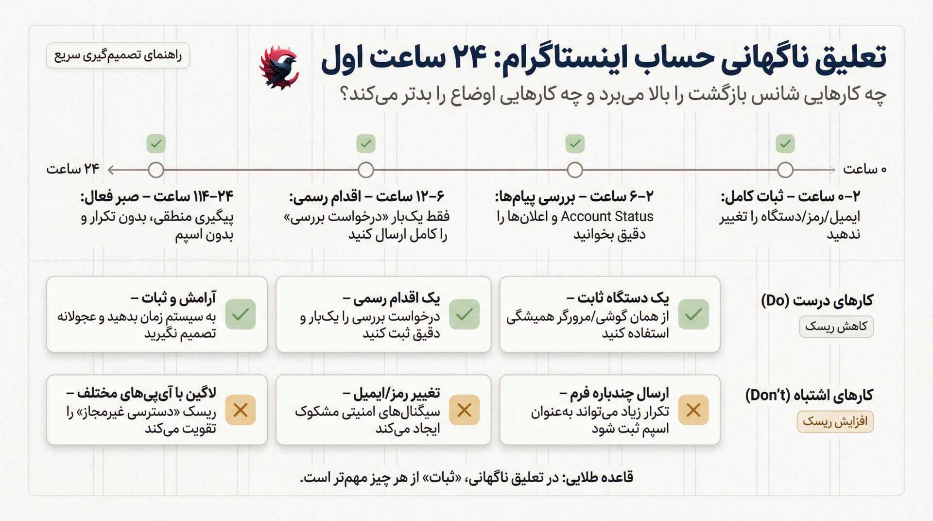 به همین دلیل، عبور موفق از تعلیق ناگهانی فقط به «باز شدن حساب» ختم نمیشود؛ بلکه شامل اصلاح رفتار، بازبینی ابزارها، تثبیت الگوهای فعالیت و درک محدودیتهای جدید حساب هم هست. این مرحله برای پیجهای کاری و برندها اهمیت دوچندان دارد، چون کوچکترین خطا میتواند دوباره همان چرخه را تکرار کند.