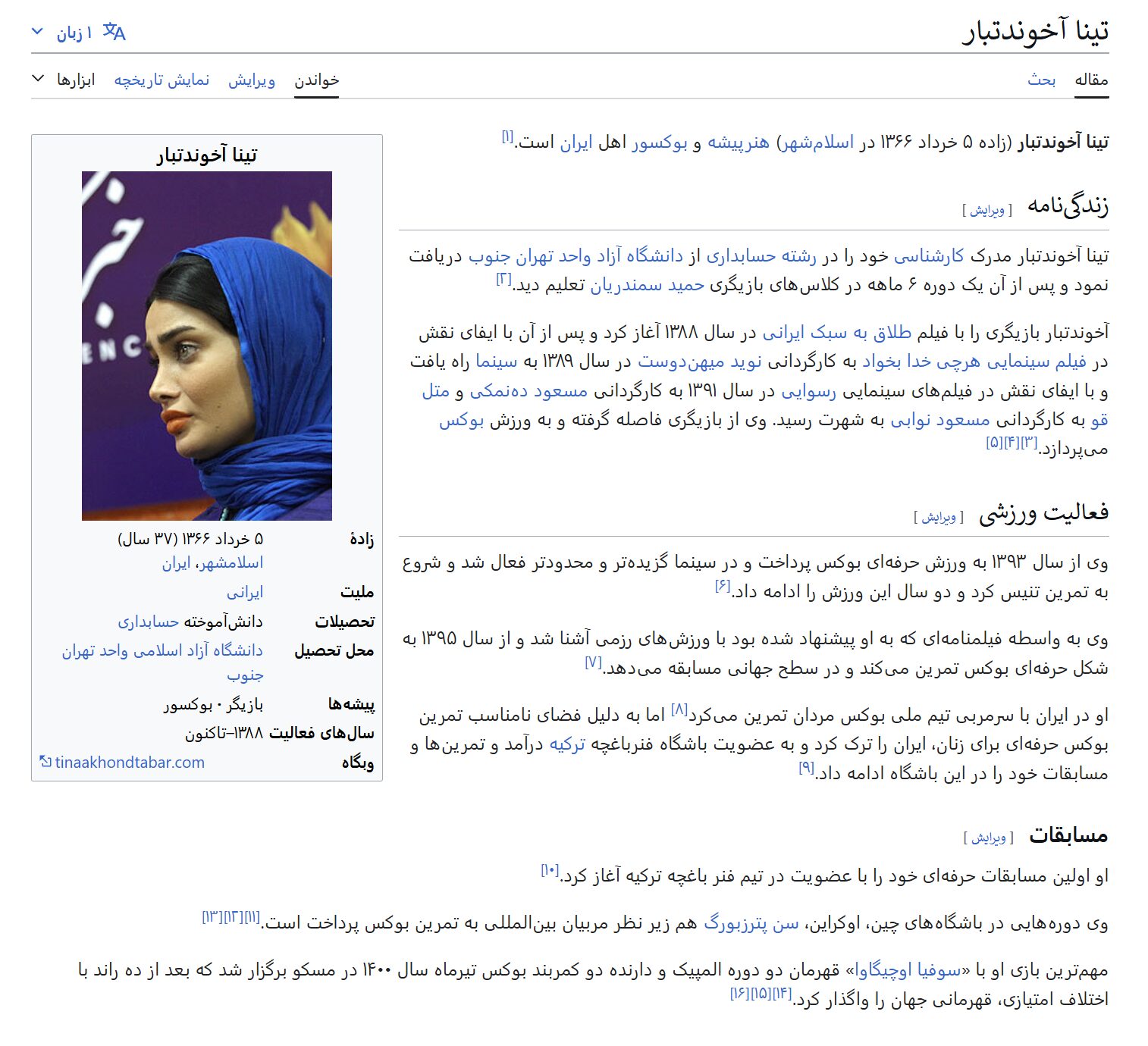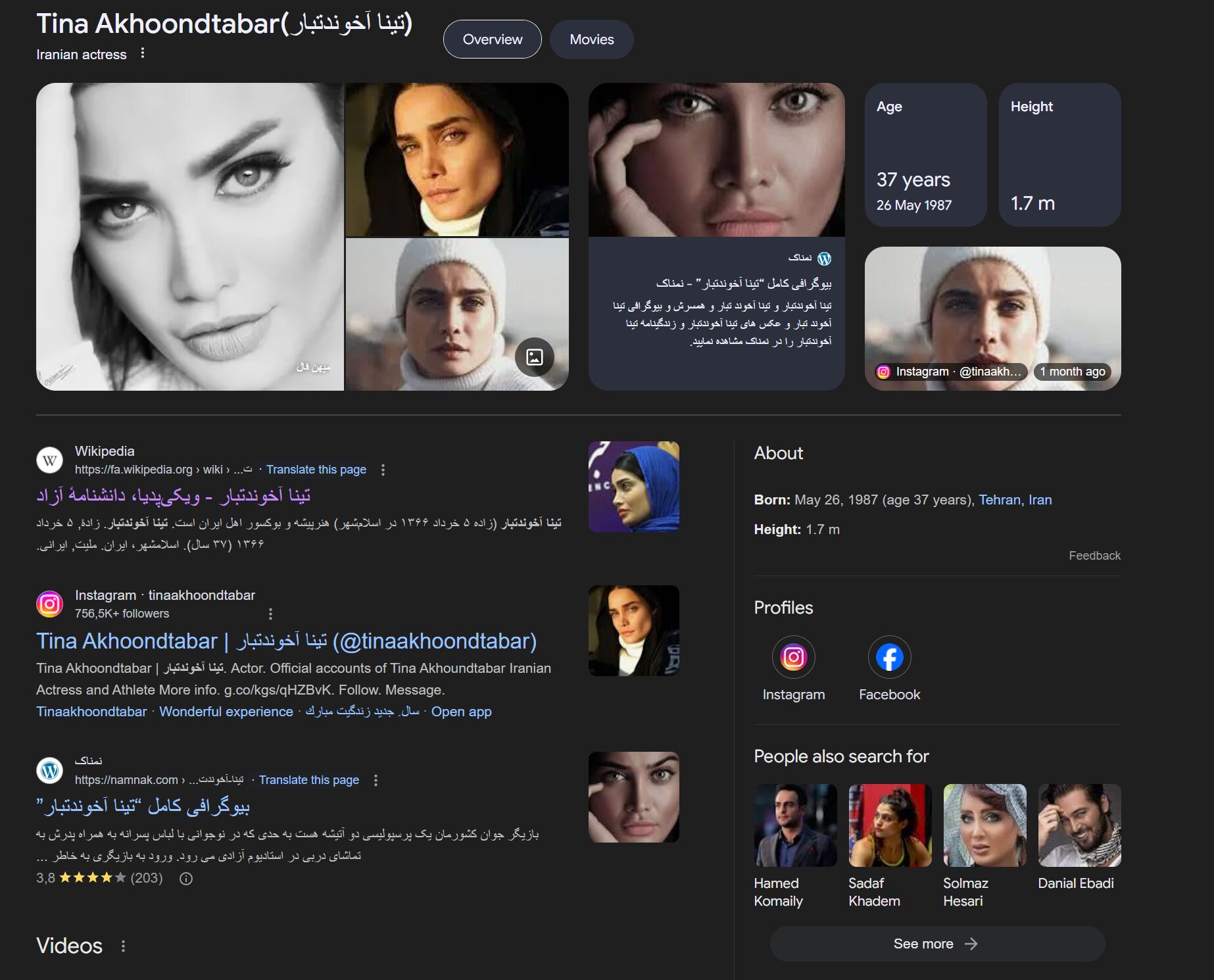 ساخت ویکی پدیا و گوگل نالج و دریافت تیک آبی اینستاگرام برای خانم تینا آخوندتبار.