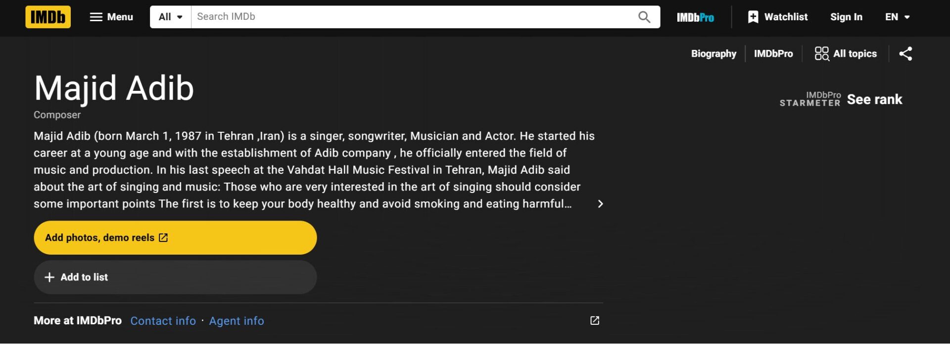 ساخت رزومه دیجیتال ، انتشار اخبار و مقاله ، دریافت تیک آبی اینستاگرام و ساخت صفحه IMDb برای جناب مجید ادیب.