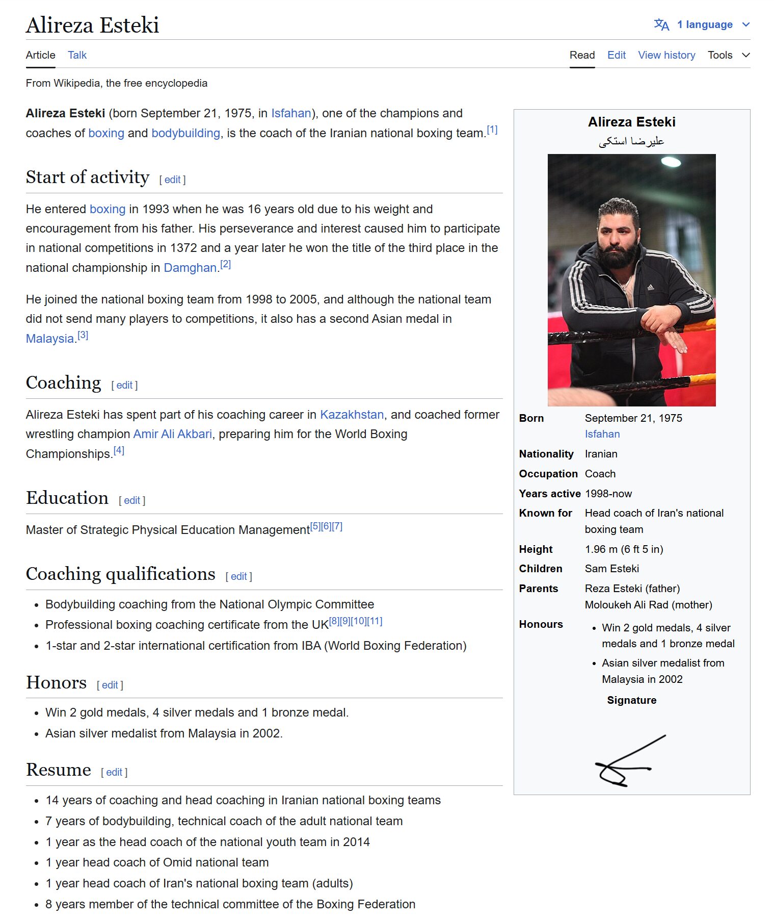 ساخت رزومه دیجیتالی جناب علیرضا استکی سرمربی تیم ملی بوکس ایران، گوگل نالج ، ویکی پدیا انگلیسی و فارسی.